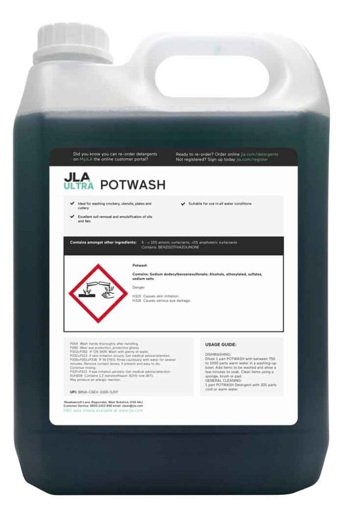 When you need to clean cutlery, crockery and utensils by hand, the JLA Ultra potwash will give you such a sparkling finish that you’d never know they hadn’t been through a dishwasher. It cuts through grease, fats and dried food debris with ease and is suitable for use in professional kitchens and catering establishments.